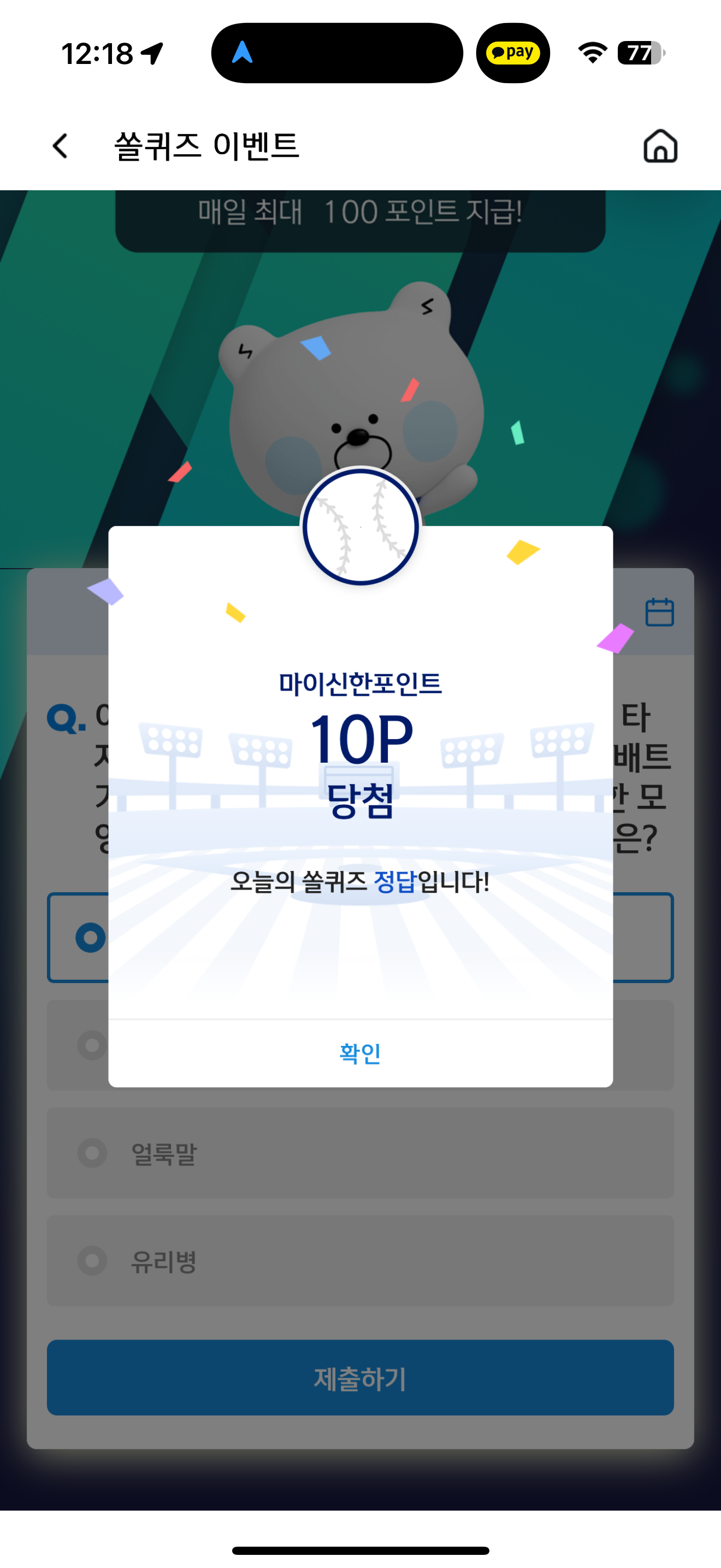 신한 슈퍼SOL 야구/상식 쏠퀴즈 정답은 어뢰 입니다