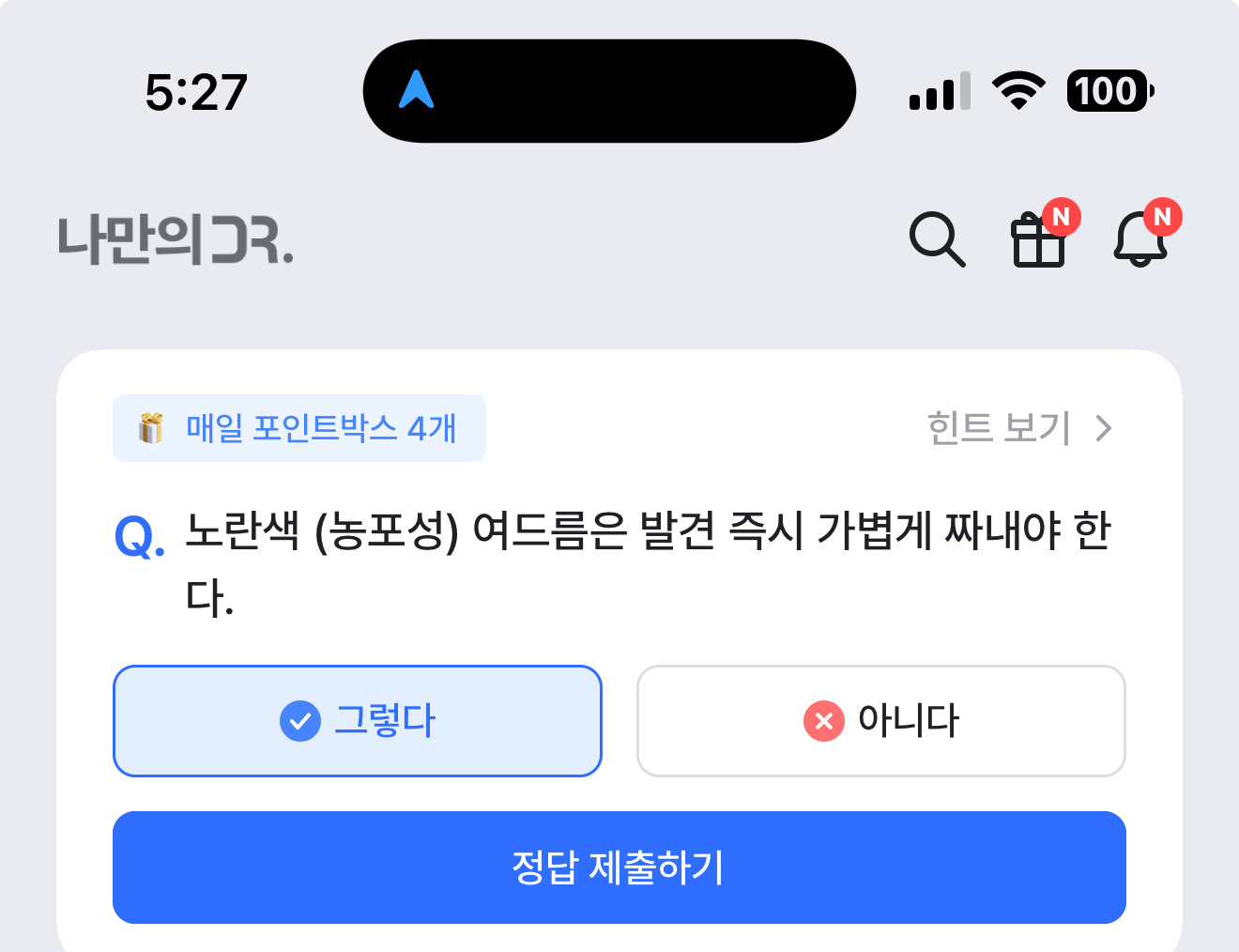 나만의 닥터 퀴즈 정답은 그렇다 입니다