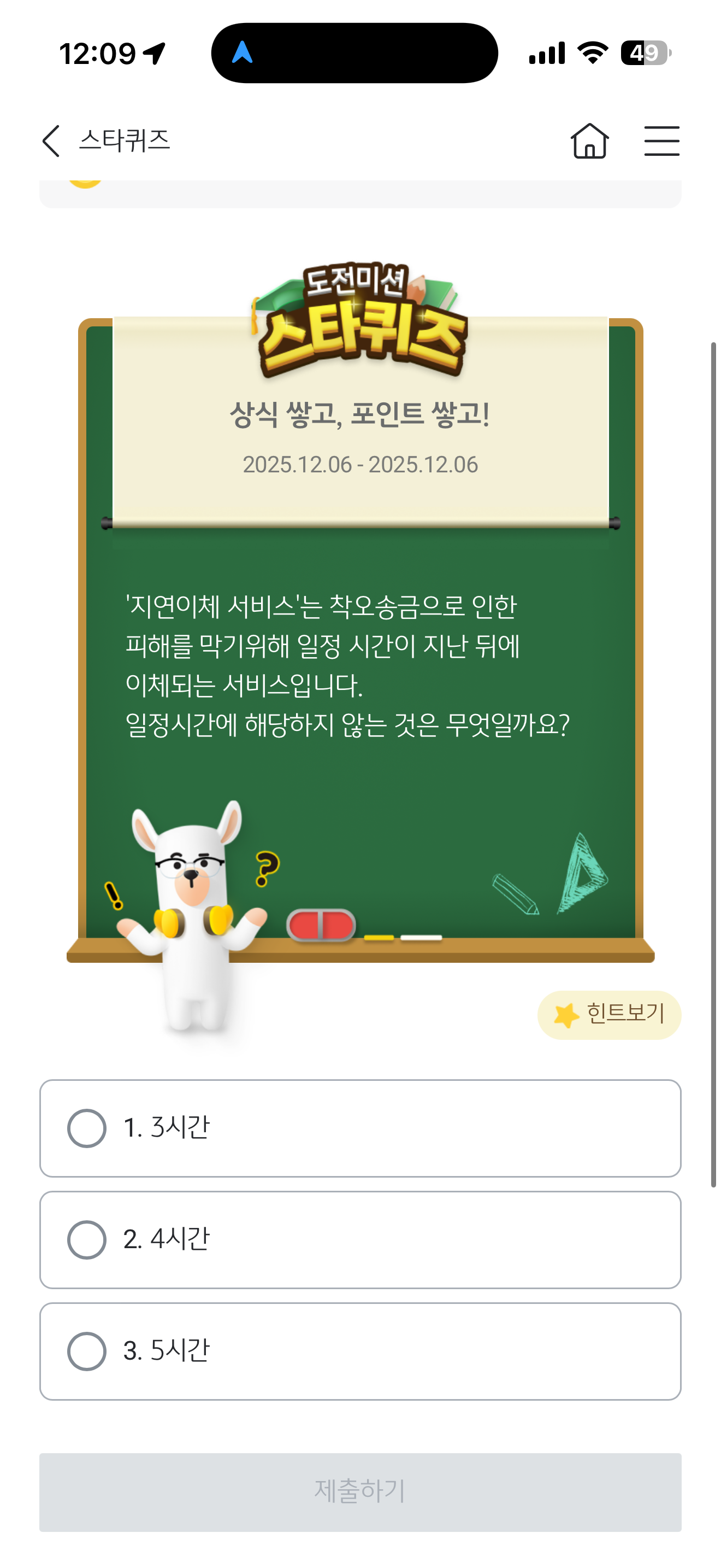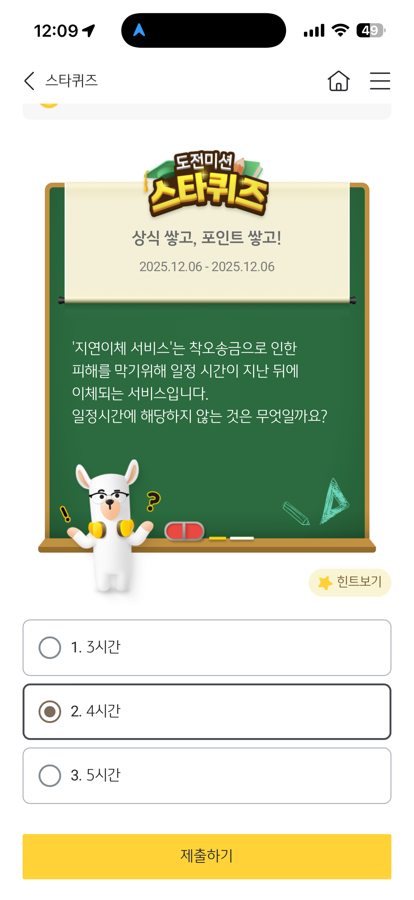 KB스타뱅킹 스타퀴즈 정답은 4시간 입니다