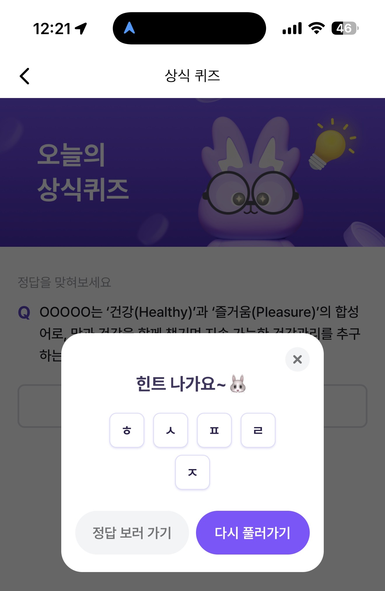 비트버니 오늘의 퀴즈 정답은 헬시플레저 입니다