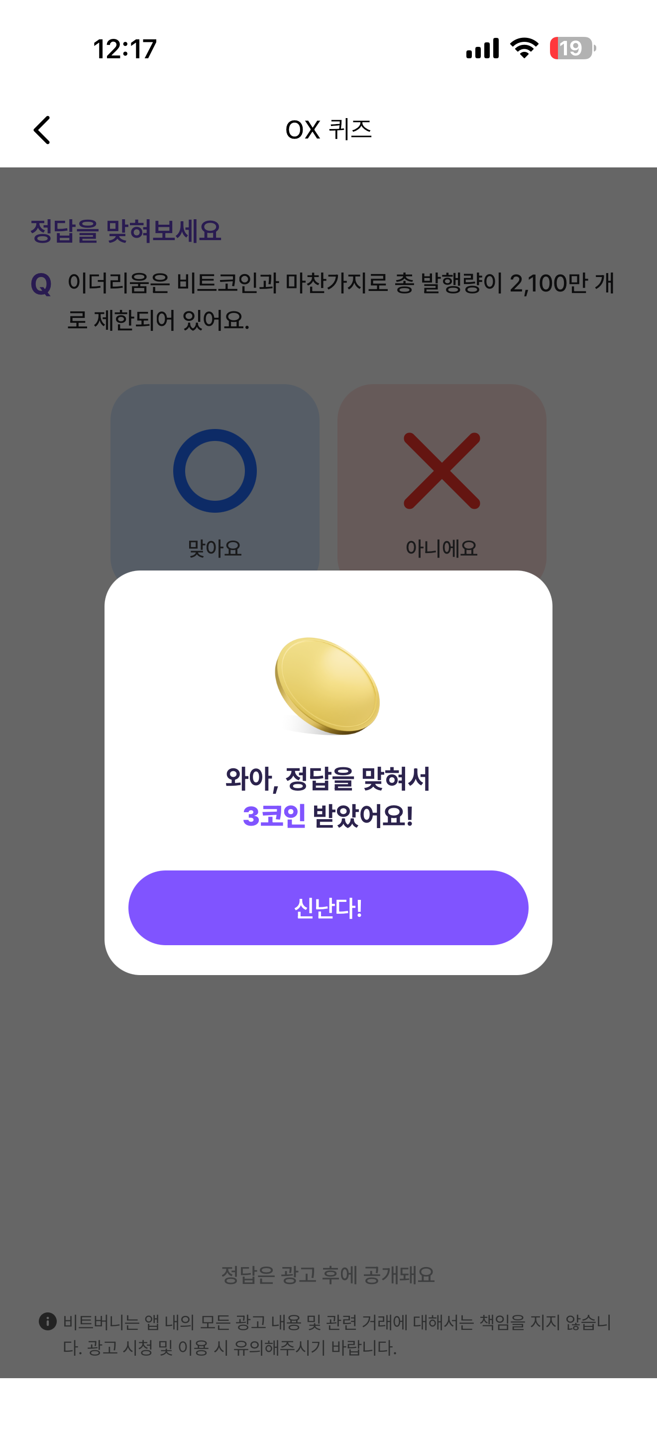 이더리움은 비트코인과 마찬가지로 총 발행량이 2,100만 개로 제한되어 있어요 O, X 퀴즈인데요. 이더리움은 비트코인과 함께 대표적인 코인이죠. 과연 총 발행량이 2,100만 개로 제한되어 있을까요? 상식으로 알아두세요