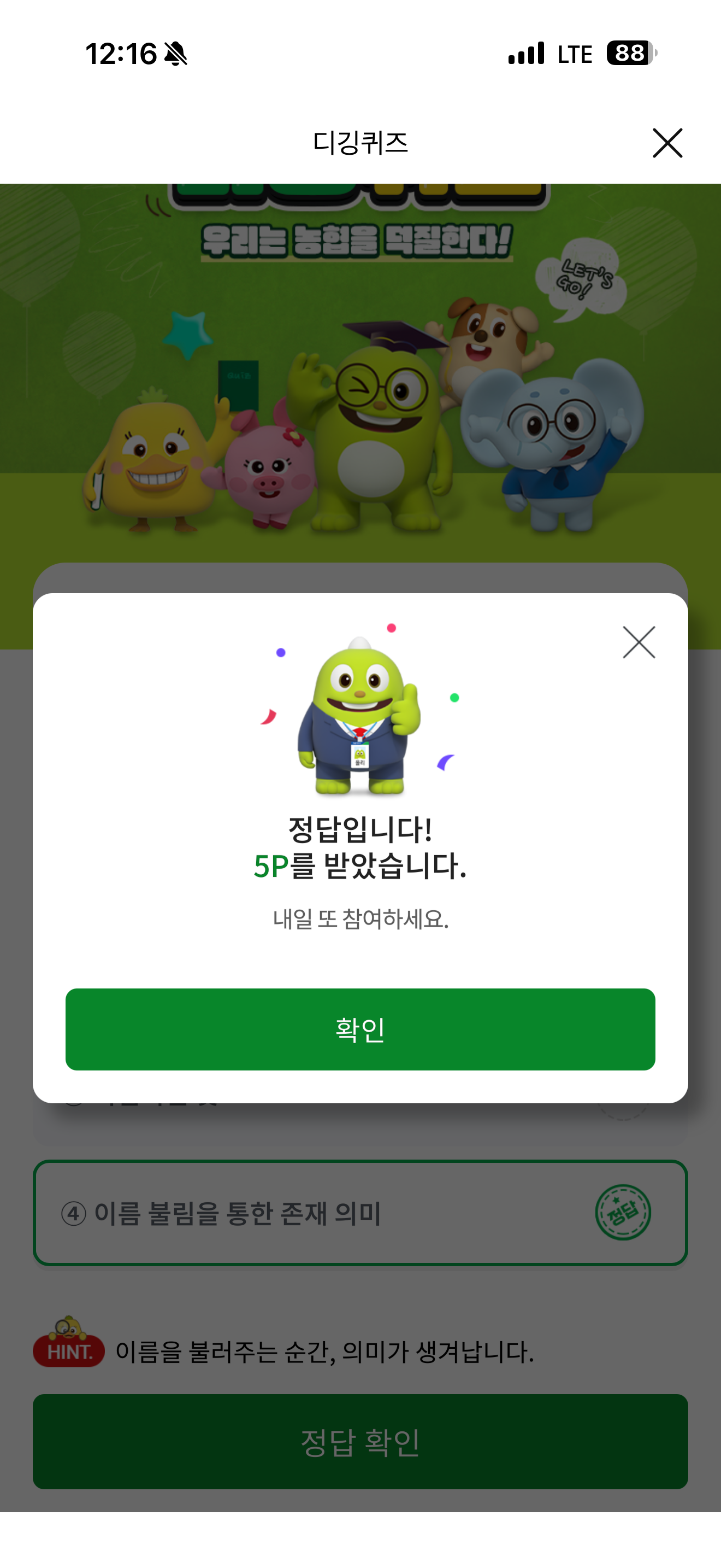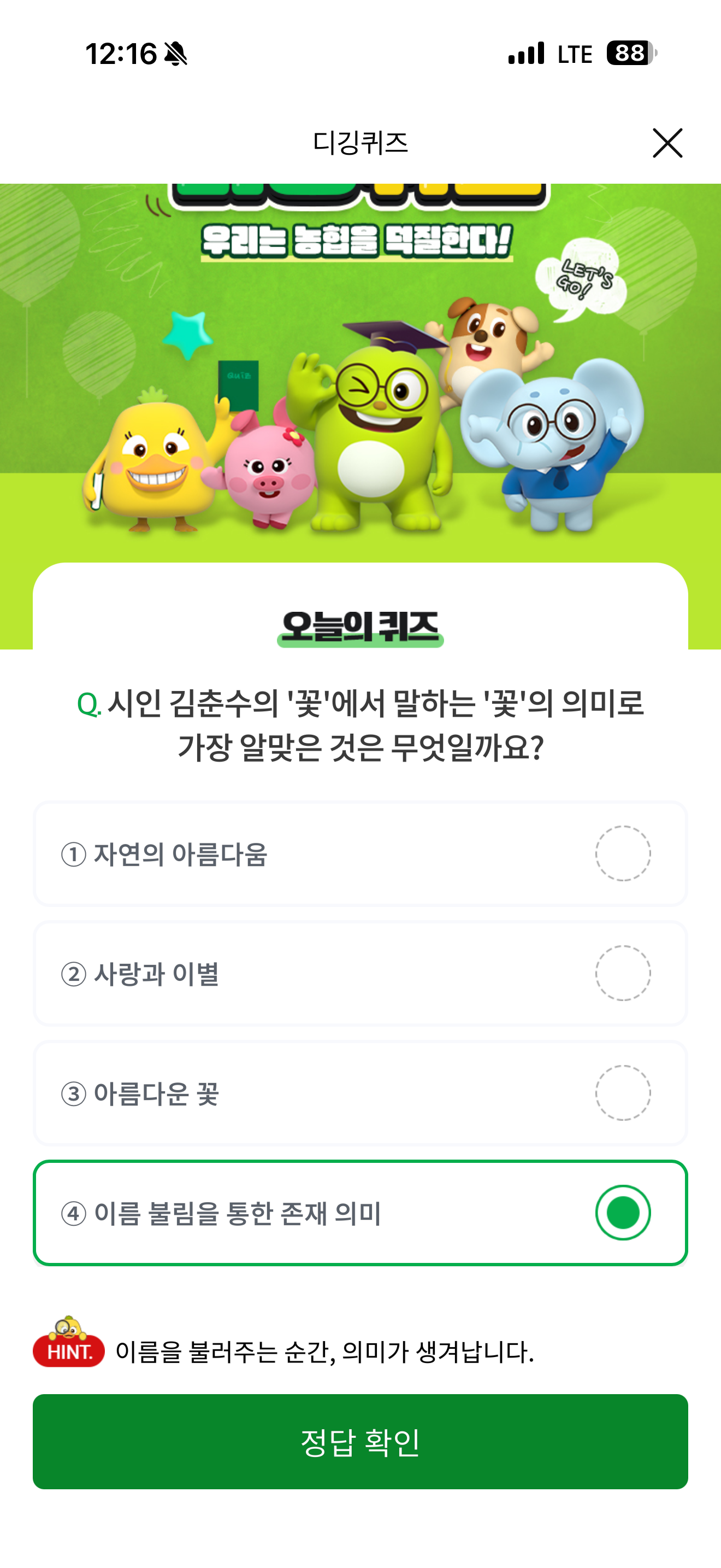 NH올원뱅크 디깅퀴즈 정답은 이름 불림을 통한 존재 의미 입니다