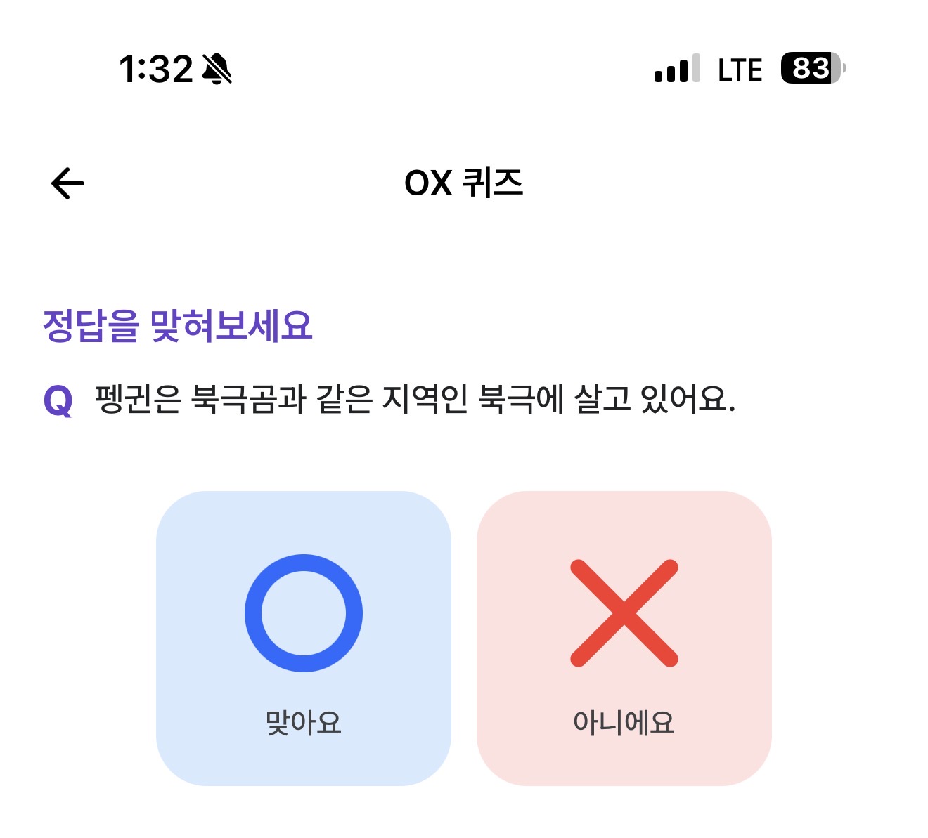 펭귄은 북극곰과 같은 지역인 북극에 살고 있어요. O, X 퀴즈인데요. 펭귄은 북극, 남극 서식지가 다를까요? 얼음 위라면 다 가능할까요? 북극곰, 남극곰이 있을까요? 잘 참고해 두세요