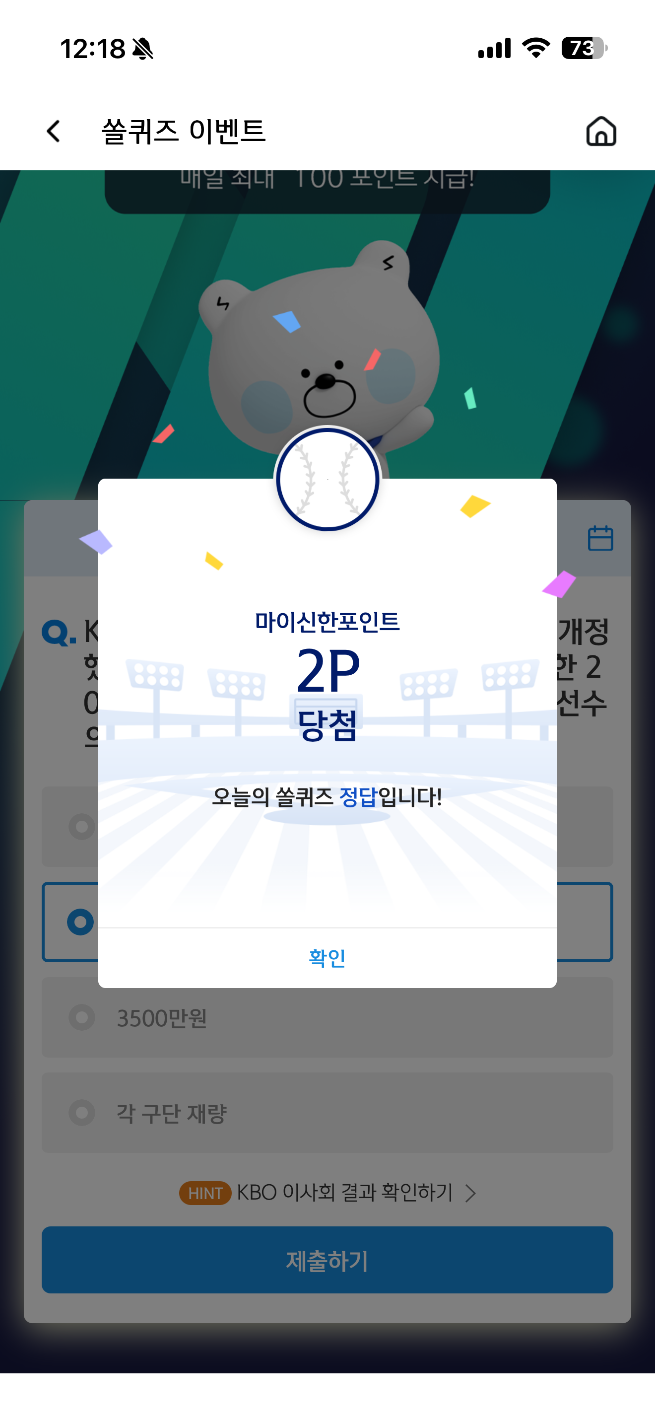 신한 슈퍼SOL 야구/상식 쏠퀴즈 정답은 3300만원 입니다