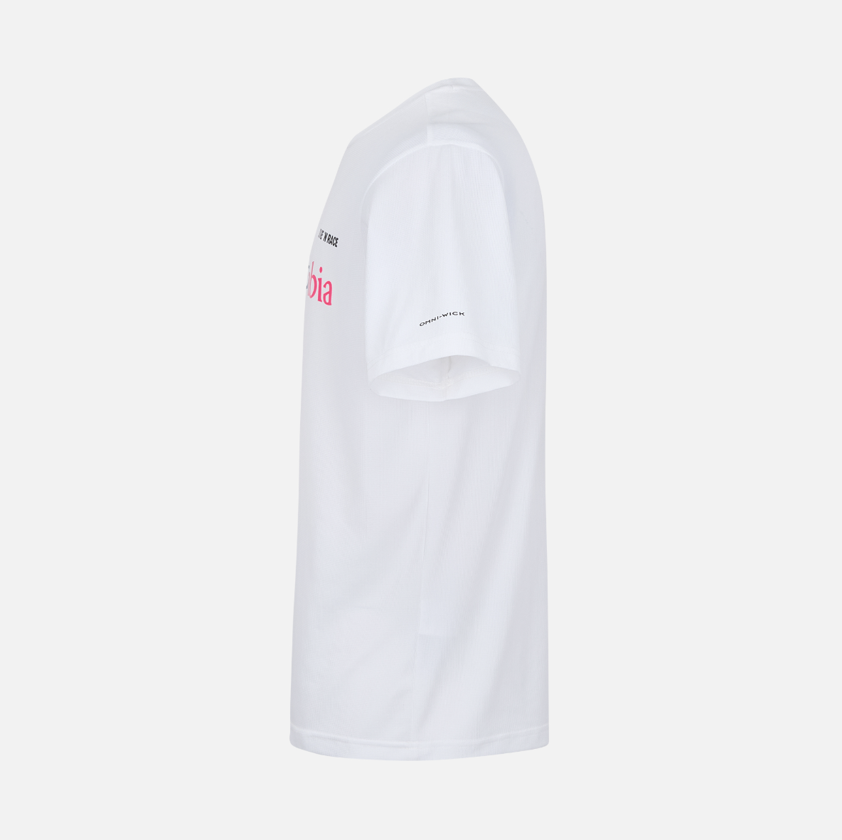 땀 흡수–건조 기능이 뛰어난 컬럼비아의 기능성 러닝 상의.