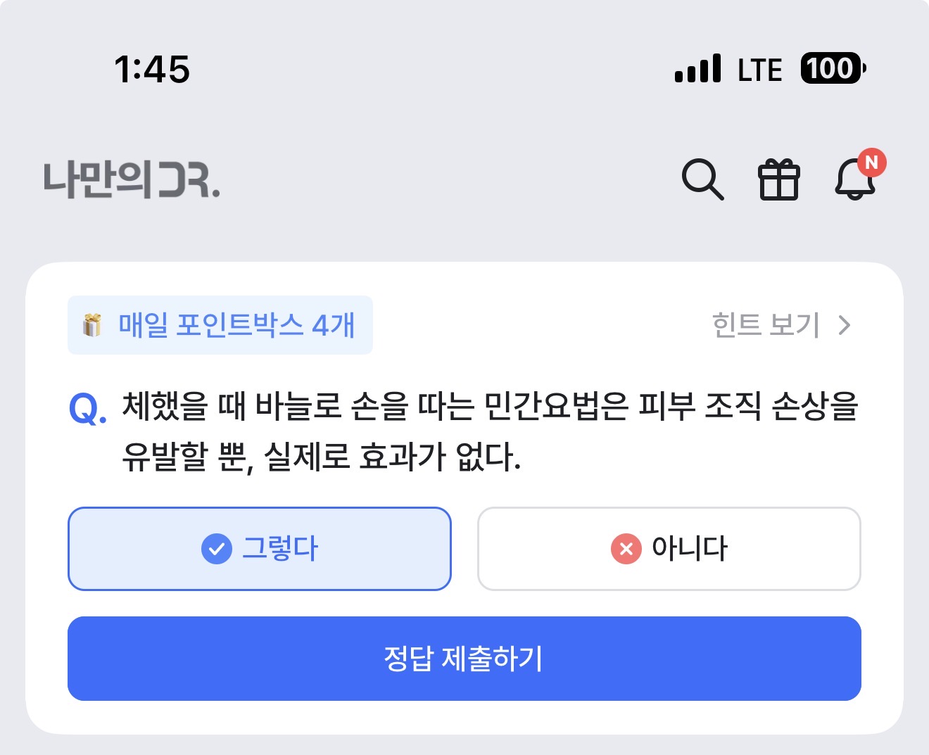 체했을 때 바늘로 손을 따는 민간요법은 피부 조직 손상을 유발할 뿐, 실제로 효과가 없다. 그렇다 아니다 선택하면 되는데요. 체했을 때 바늘로 손을 따는 민간요법 많이 사용했죠. 효과가 있었던 걸로 기억하는데 맞을까요?