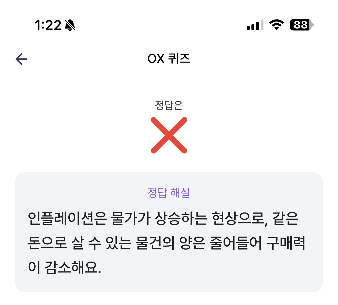 물가가 오르는 인플레이션 상황에서는 같은 금액의 돈으로 살 수 있는 물건의 양이 늘어나요 O, X 퀴즈인데요. 물가가 오르는 인플레이션 상황이 이뤄지고 있습니다. 같은 금액의 돈으로 살 수 있는 물건의 양이 늘어날까요?