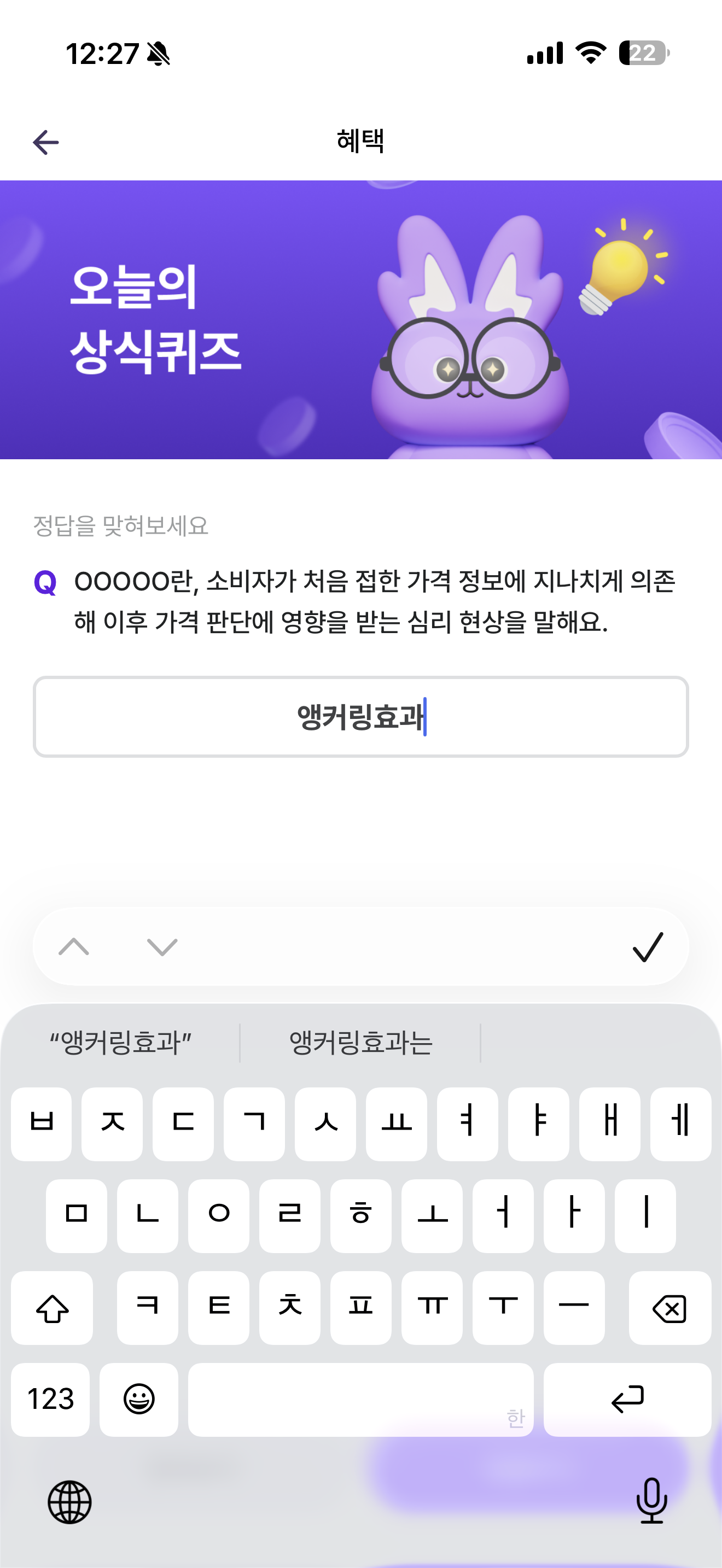 OOOOO란, 소비자가 처음 접환 가격 정보에 지나치게 의존해 이후 가격 판단에 영향을 받는 심리 현상을 말해요. 주관식 퀴즈인데요.