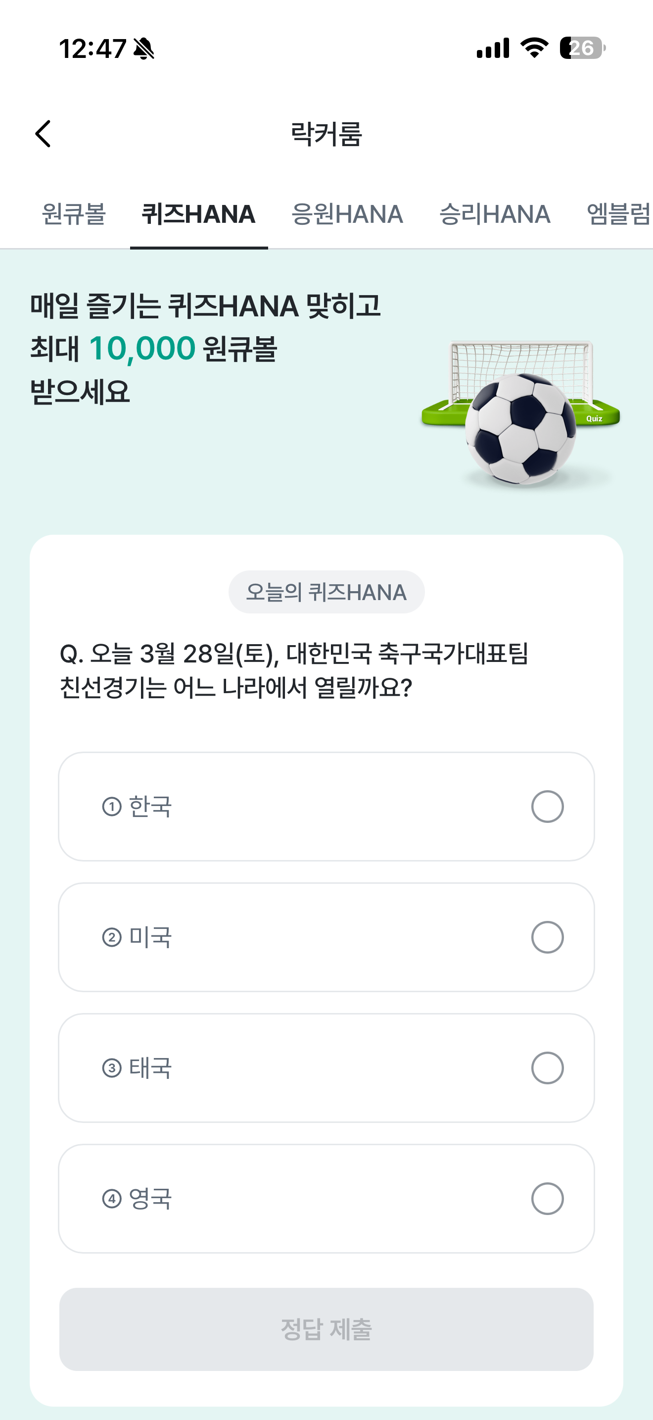 하나원큐 축구 play 퀴즈 HANA 정답은 영국 입니다