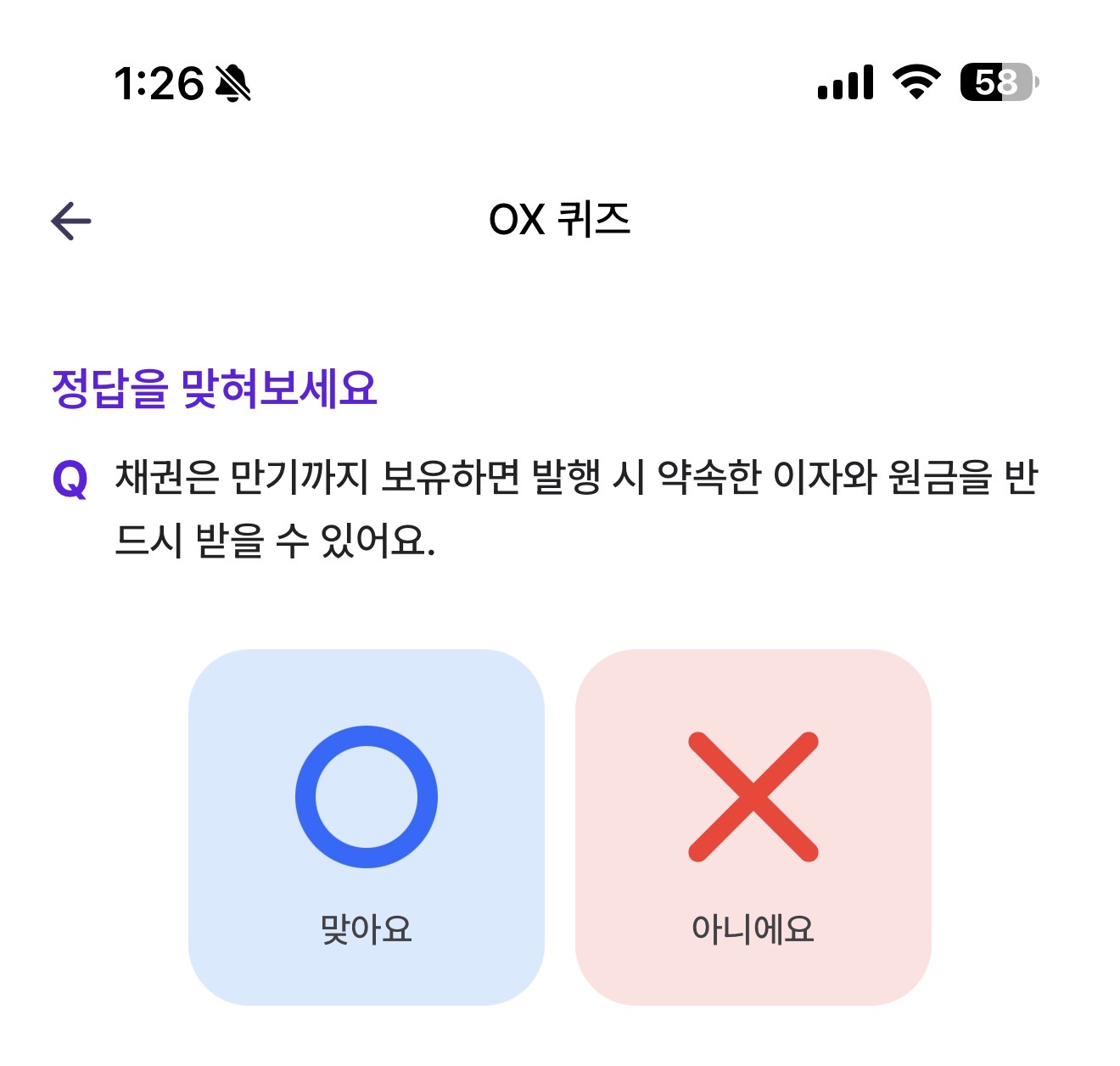 채권은 만기까지 보유하면 발생 시 약속한 이자와 원금을 반드시 받을 수 있어요. O, X 퀴즈인데요. 채권이 뭘까요? 만기까지 보유하면 발행시 약속한 이자와 원금을 받을 수 있을까요?