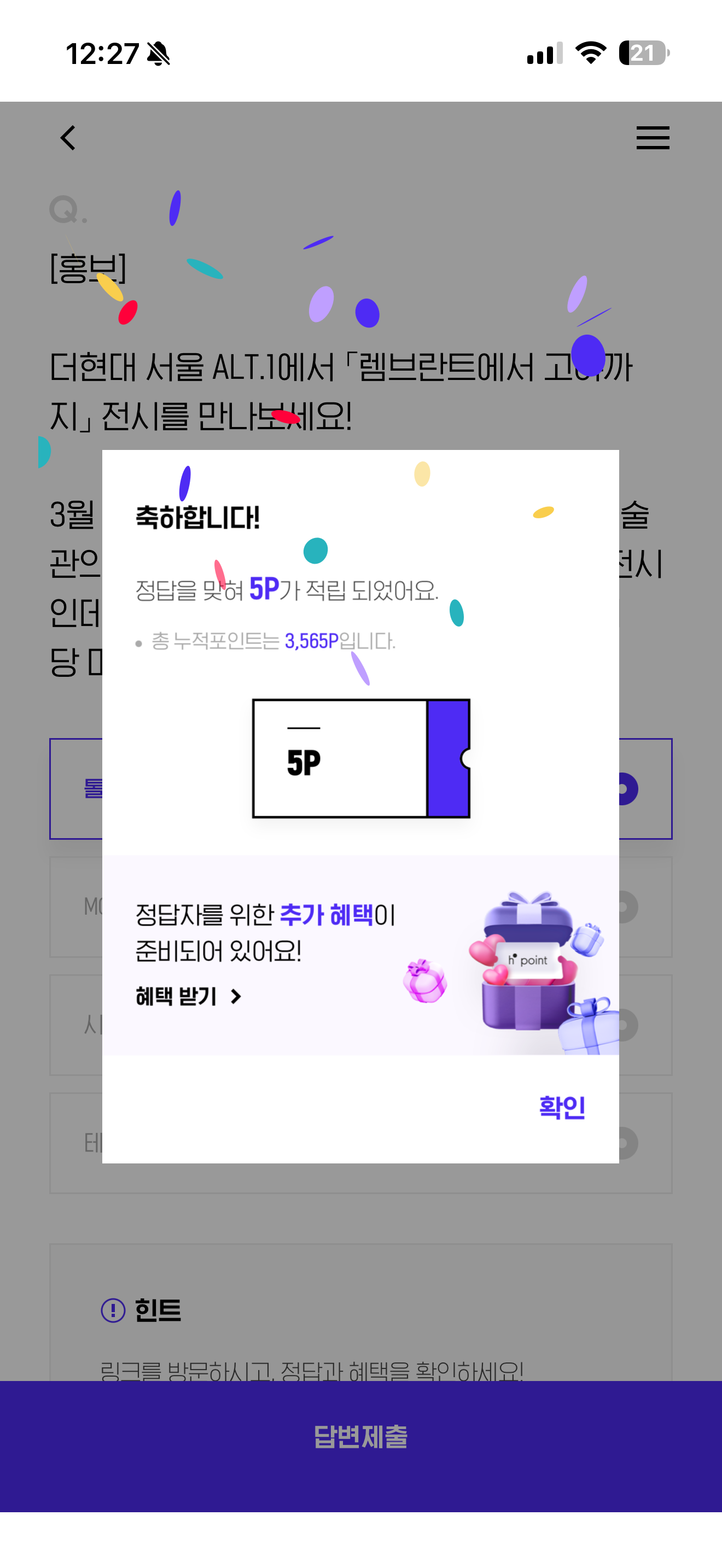 H포인트 퀴즈 3월 31일 문제입니다