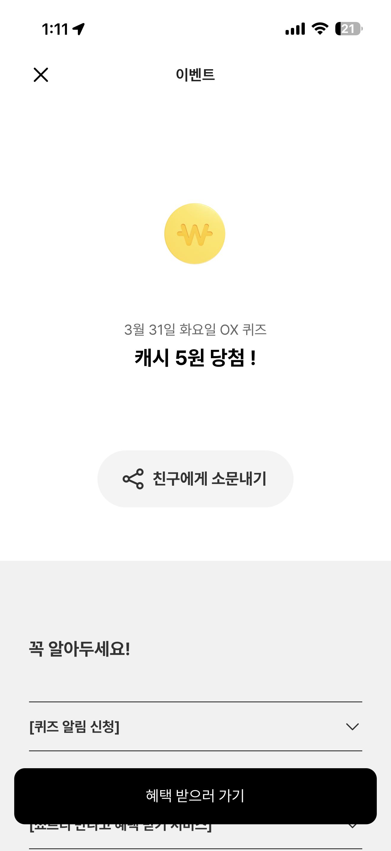 카카오뱅크 OX 퀴즈 3월 31일 문제입니다