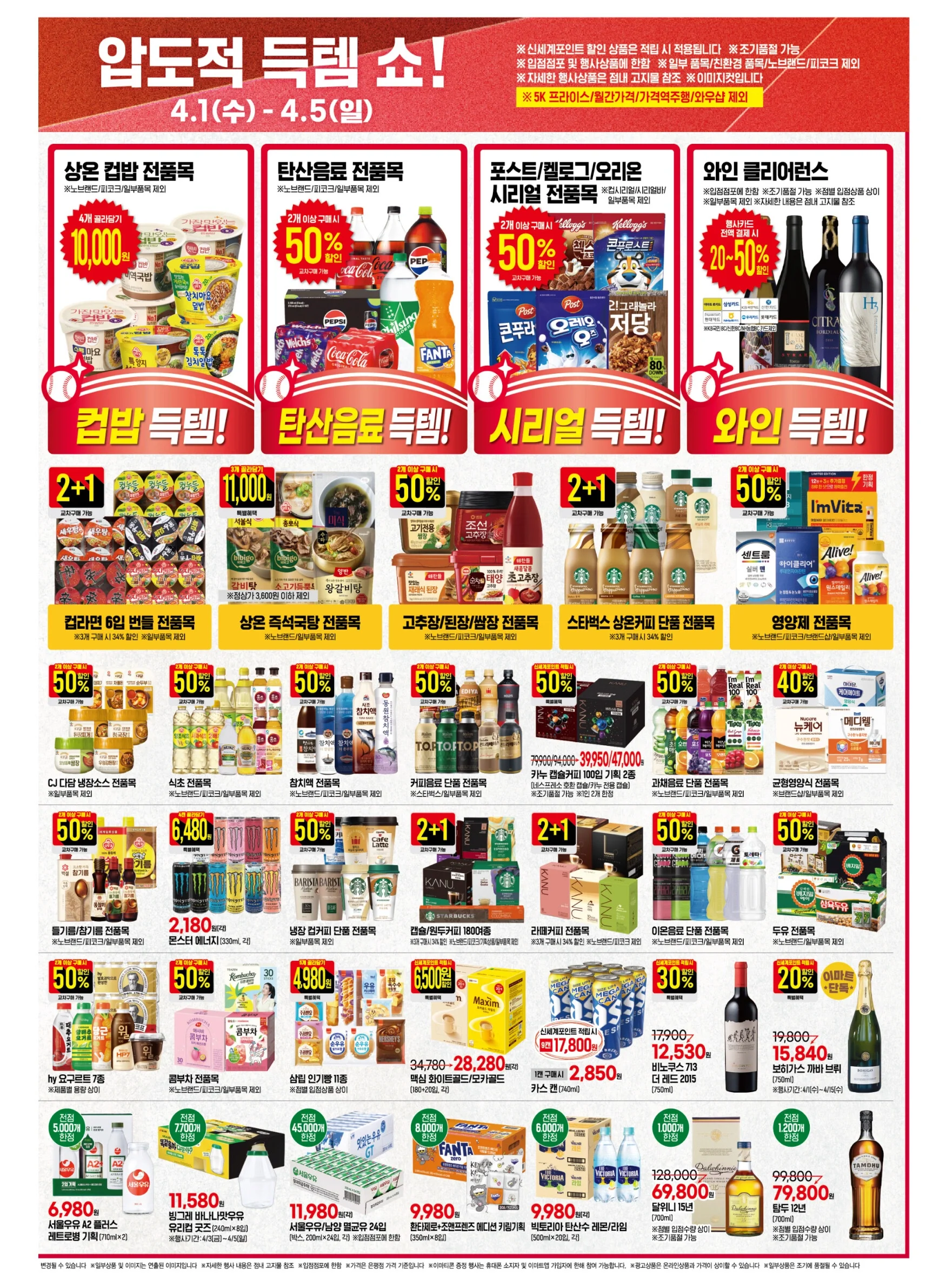 그리고 다양한 핵심 할인 제품들이 많이 있으니 이마트 전단지 잘 확인해 두세요. 이마트 할인은 4월 1일부터 5일까지 진행되니 인기 있는 제품들은 오픈런 해서 구입하세요